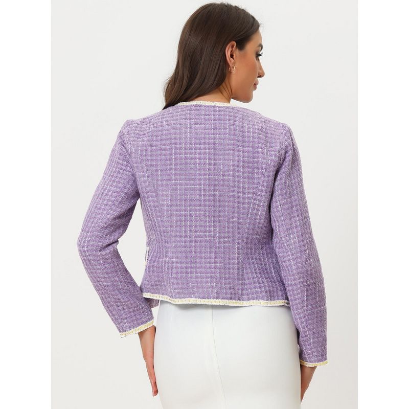 INSPIRE CHIC Women's Long Sleeve Open Front Work Office Short Plaid Tweed Blazer Purple Small