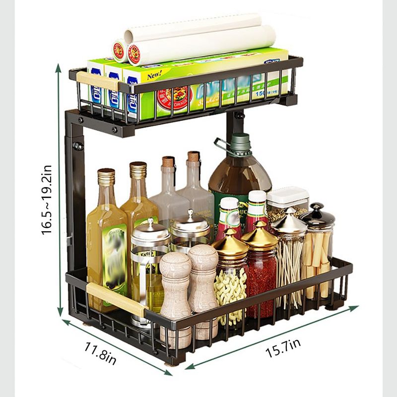 Slide Out Under Sink Storage Shelves, Two Tier Pull Out Kitchen Bathroom Organizers and Storage, Pull Out Cabinet Organizer