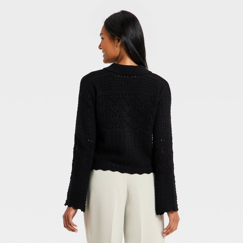 Women's Collared Crochet Cardigan - A New Day™ Black M