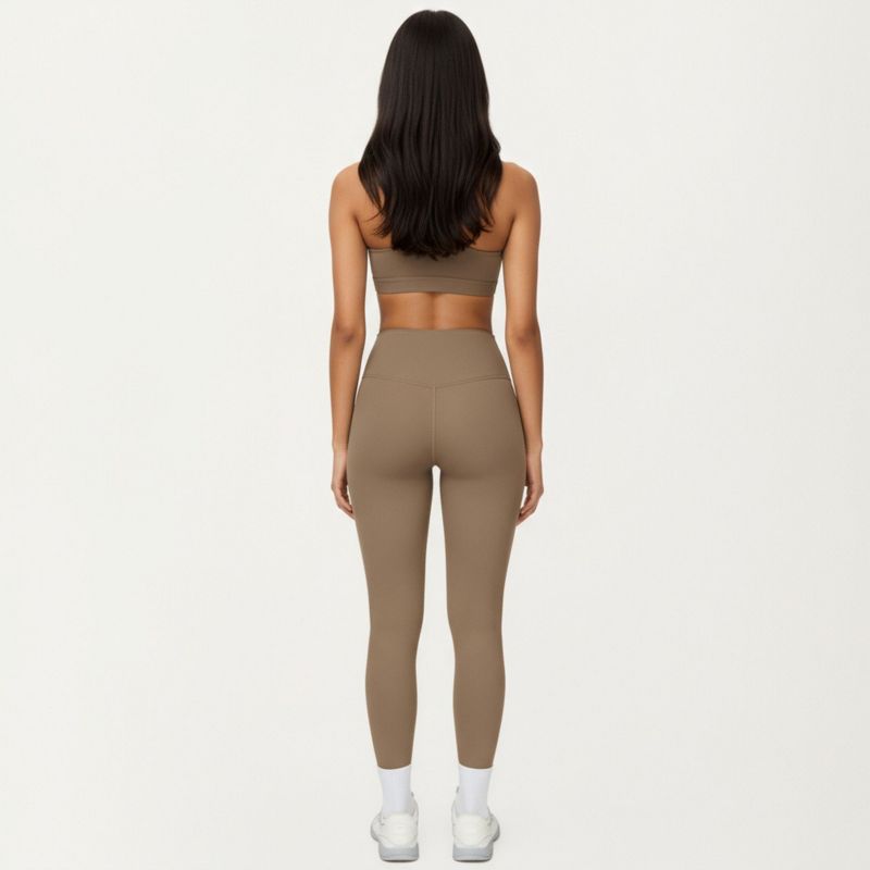 Anna-Kaci Active Women's High Waist Full Length Leggings with Smooth Seam Detailing and Stretch Fit Fabric - Small, Khaki