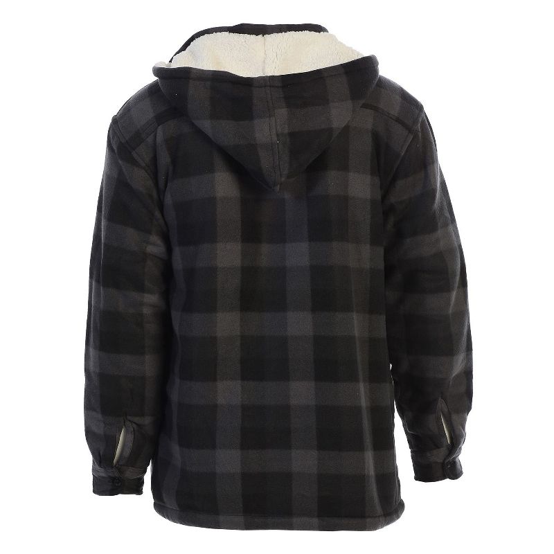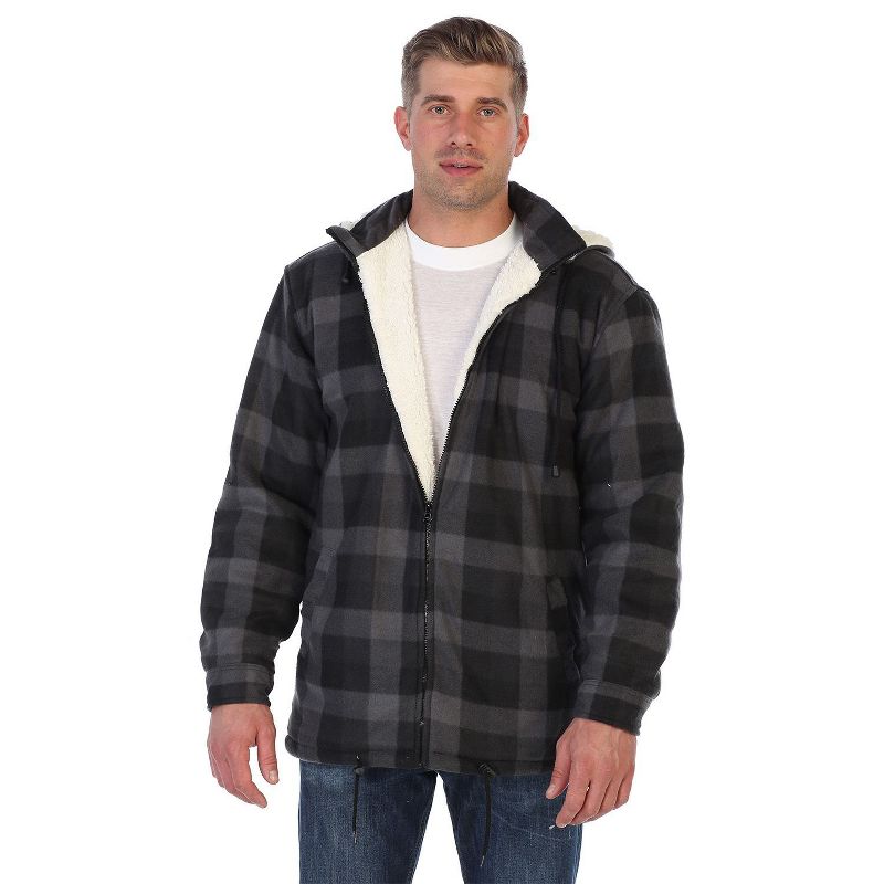 Gioberti Men's Faux Shearling Lined Flannel Jacket with Removable Hood, Charcoal Checkered, L