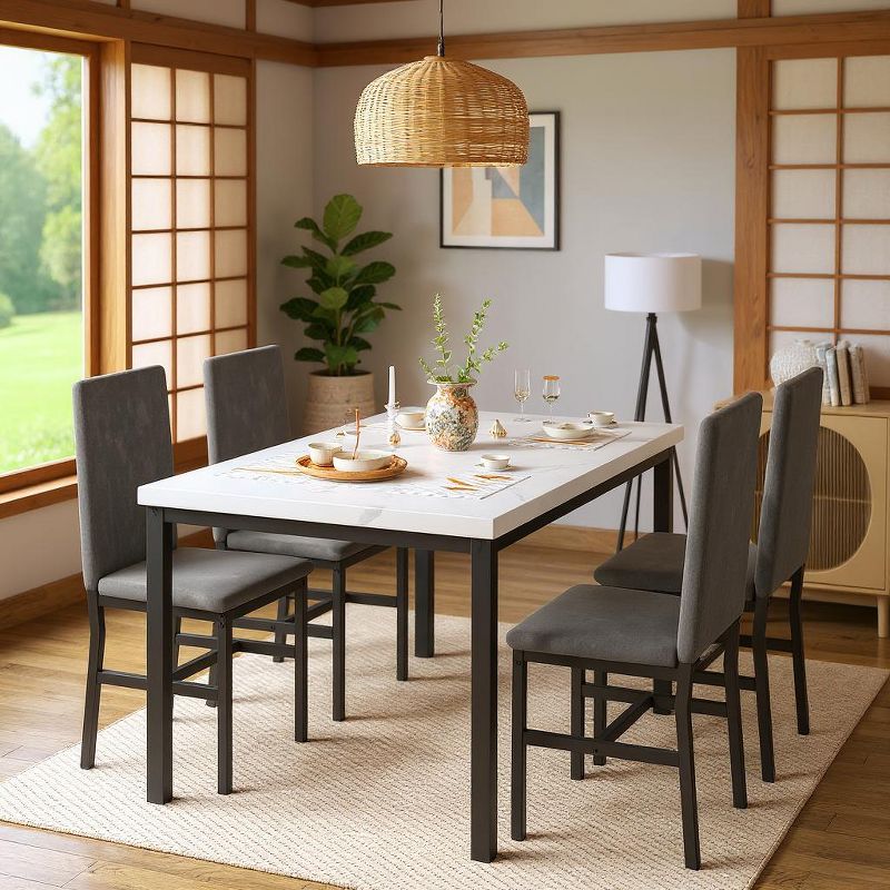 Hooseng Modern Style 5-Piece Dining Room Table And Chairs Set, Faux Marble MDF Table Top and Velvet Upholstered Chairs Dining Table Set for 4