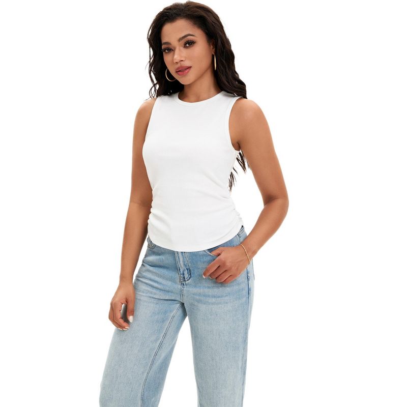 ATHLECHIC Women's Summer Ruched Ribbed Crew Neck Sleeveless Tank Tops 2 Packs Large White/Black