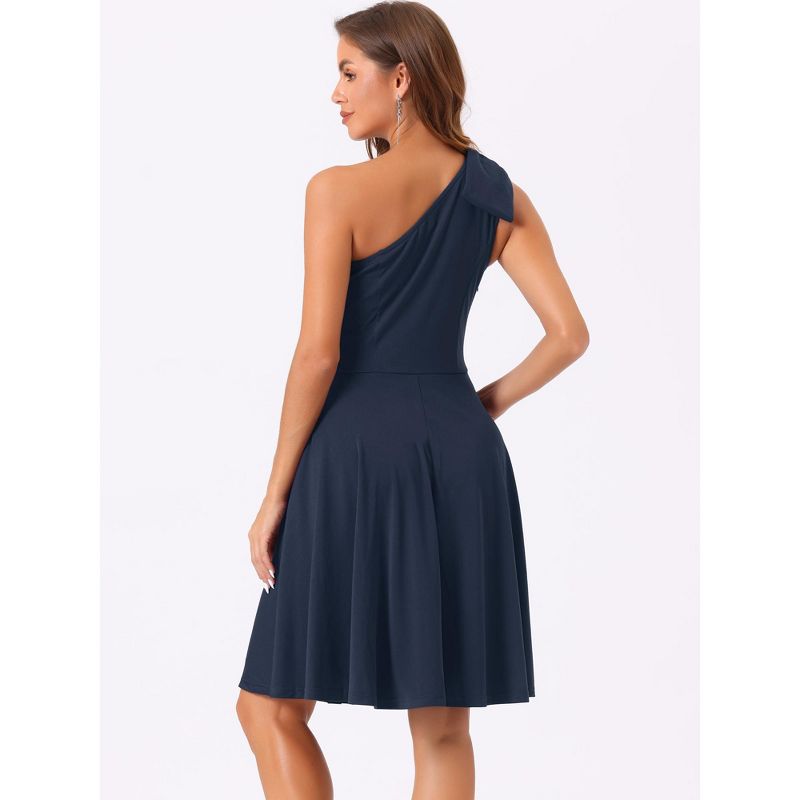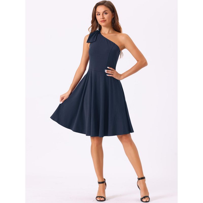 INSPIRE CHIC Women's Party Elegant Flared Bow One Shoulder Evening Cocktail Dresses Small Dark Blue