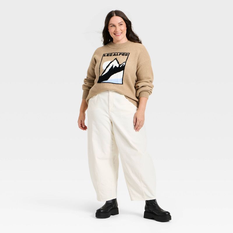 Women's Long Sleeve Cozy Alpine Crewneck Pullover Sweater - Universal Thread™ Brown 2X