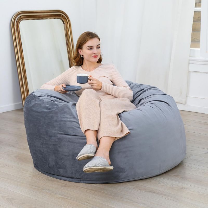 Bean Bag Chair for Teens Adults Round Giant Beanbag Chairs with Foam Filled, Living Room Furniture Sofa Chair Lazy Sofa with Velvet Fabric, Grey