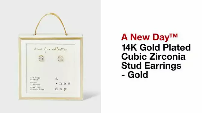 14K Gold Plated Cubic Zirconia Stud Earrings - A New Day™ Clear/Gold: Polished Nickel-Free Fashion Jewelry