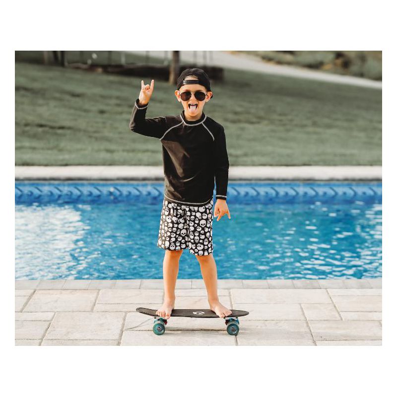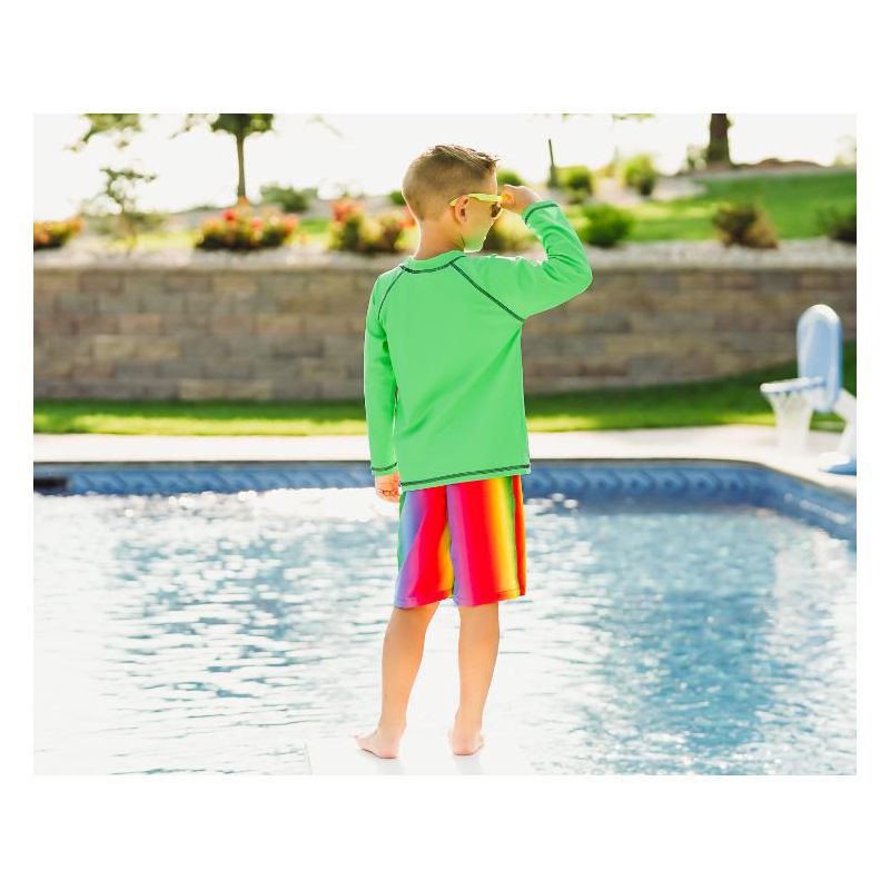 City Threads USA-Made Boys Recycled Polyester UPF 50+ Soft Stretch Below-the-Knee Printed Swim Board Shorts | Tie-Dye Blue & White Flowers - 20Y
