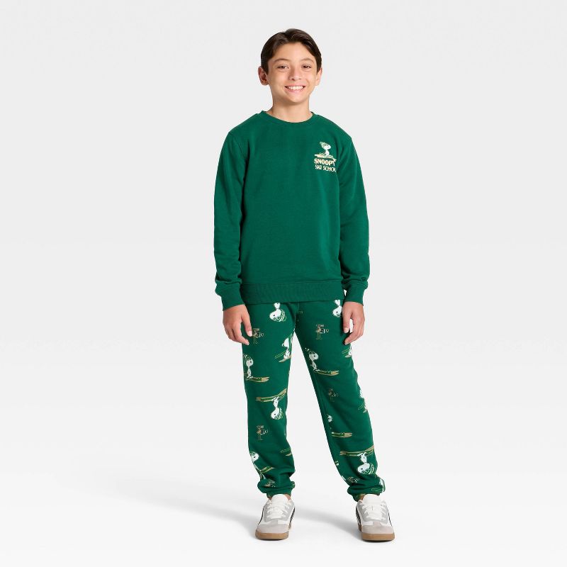 Boys' Snoopy Ski School Fleece Graphic Jogger Pants - Green XS