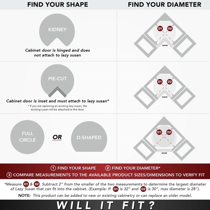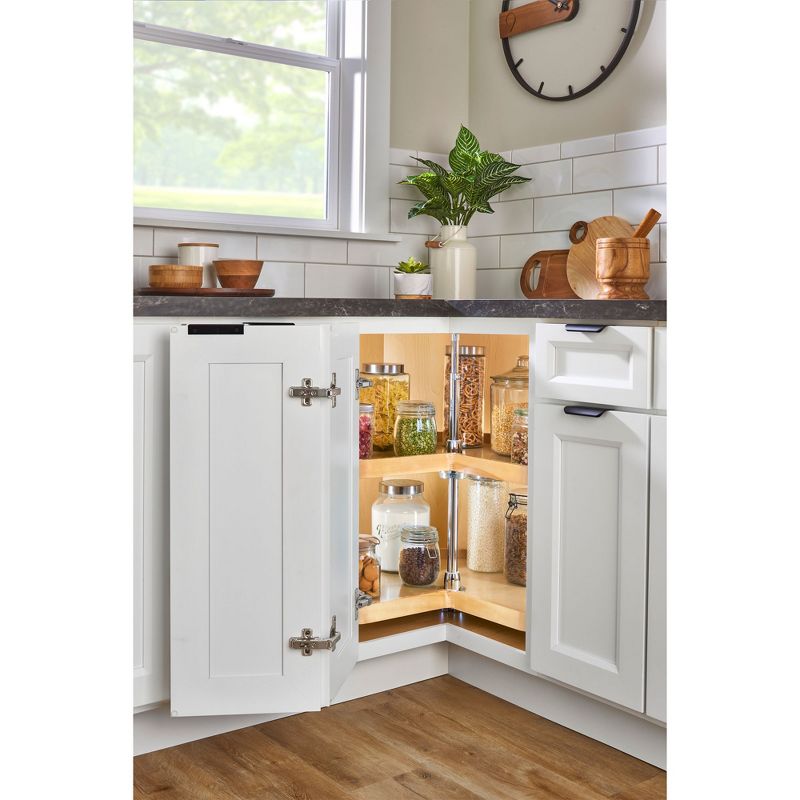 Rev-A-Shelf Dual Shelves Kidney-Shape 28" Lazy Susan Organizer for Lower Corner & Base Kitchen Cabinets, Turntable Home Storage, Wooden, 4WLS472-28-52