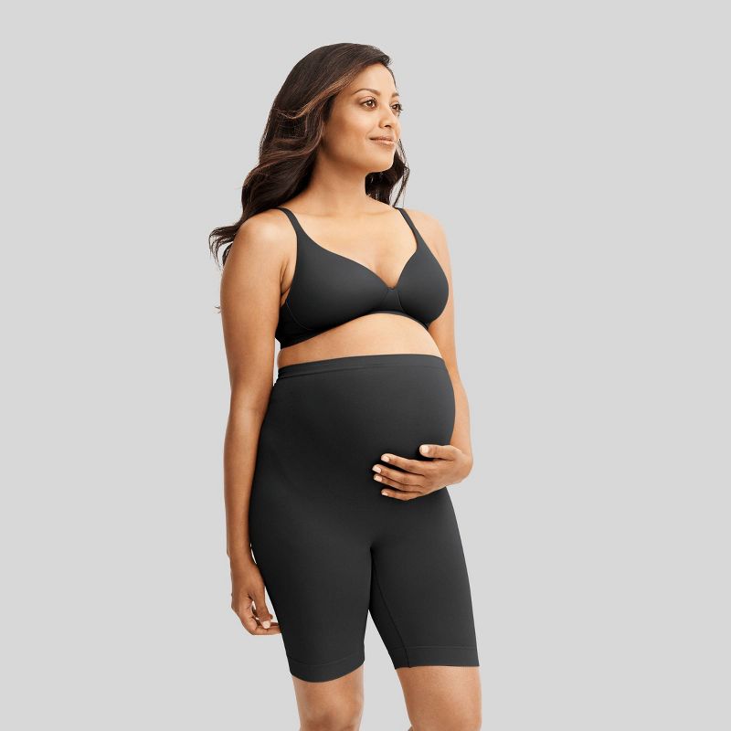 Jockey Generation™ Maternity Over-the-Belly Slipshorts - Black 1X/2X: Nylon Modal Spandex Knit, Pull-On, Solid Pattern
