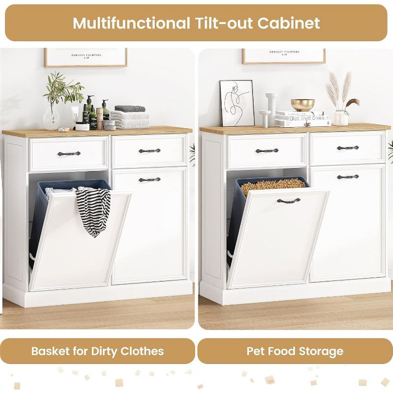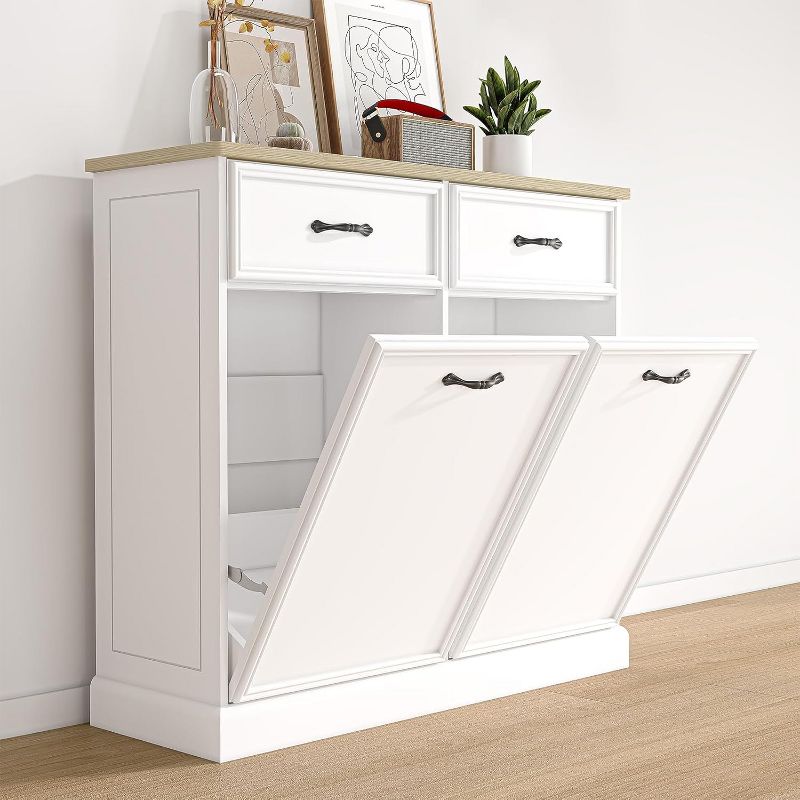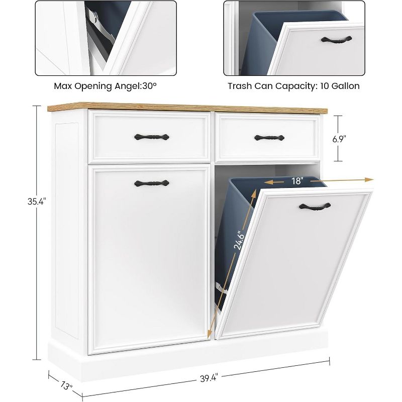 Wooden Tilt Out Trash Cabinet, Freestanding Kitchen Trash Bin Cabinet with Hideaway Drawer for Kitchen & Living Room