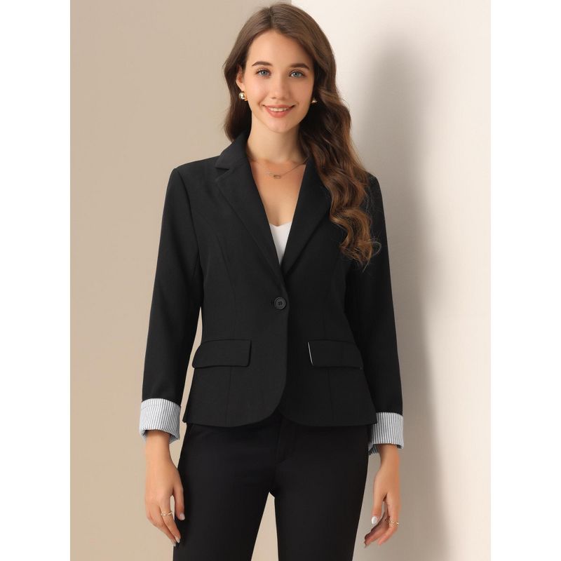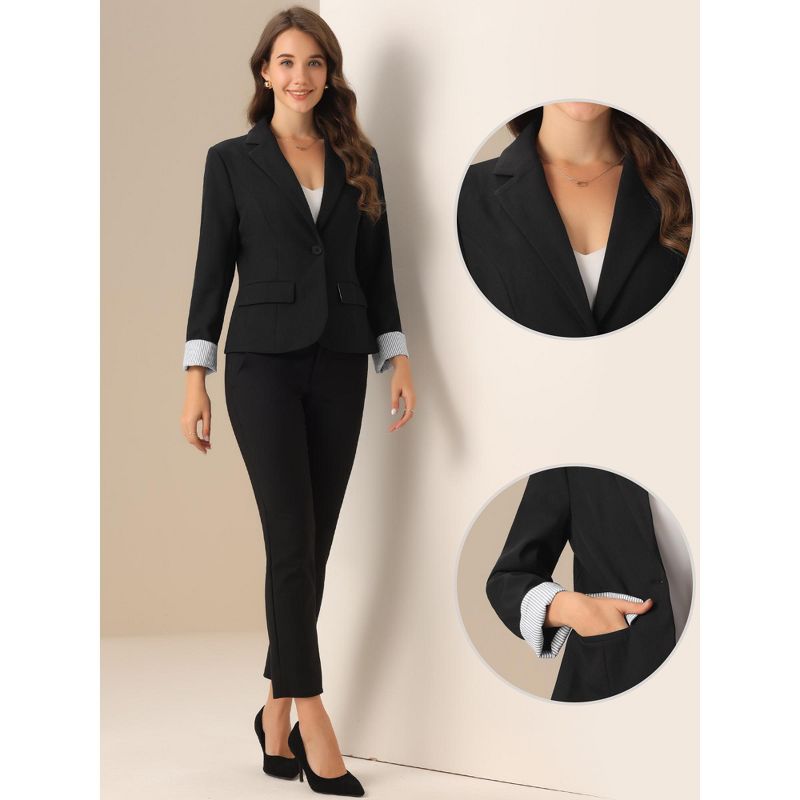 Allegra K Women's Long Sleeve One Button Notch Lapel Collar Blazer Small Black