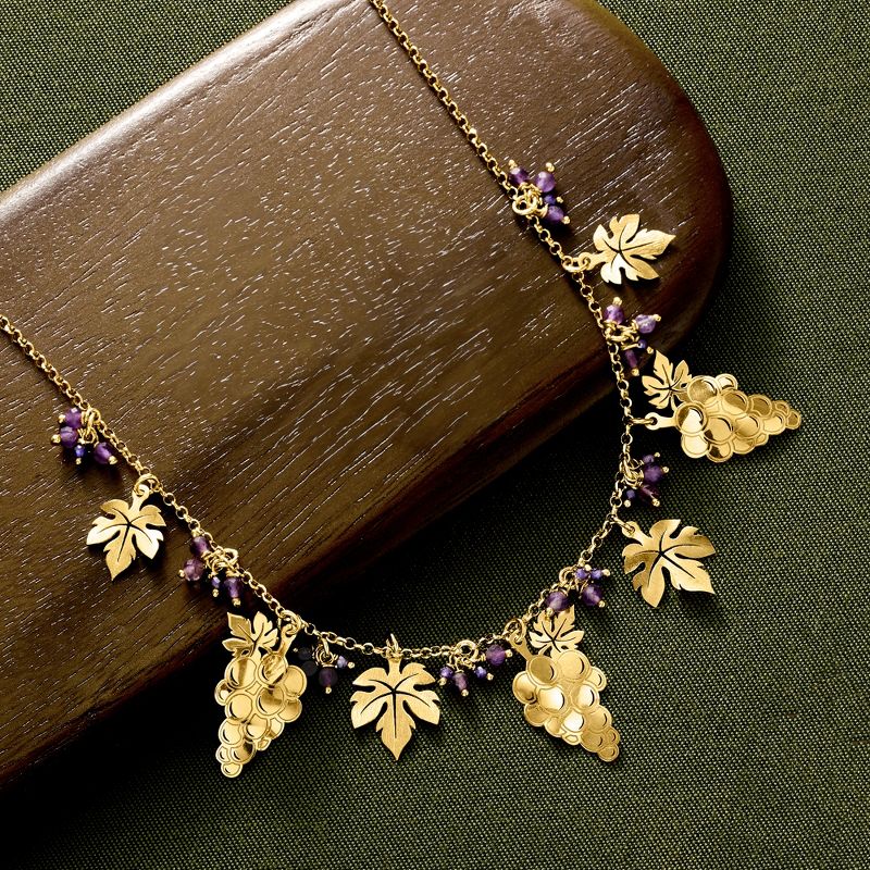 Ross-Simons Italian 1.60 ct. t.w. Amethyst Bead Grapevine Necklace in 18kt Gold Over Sterling Size 18