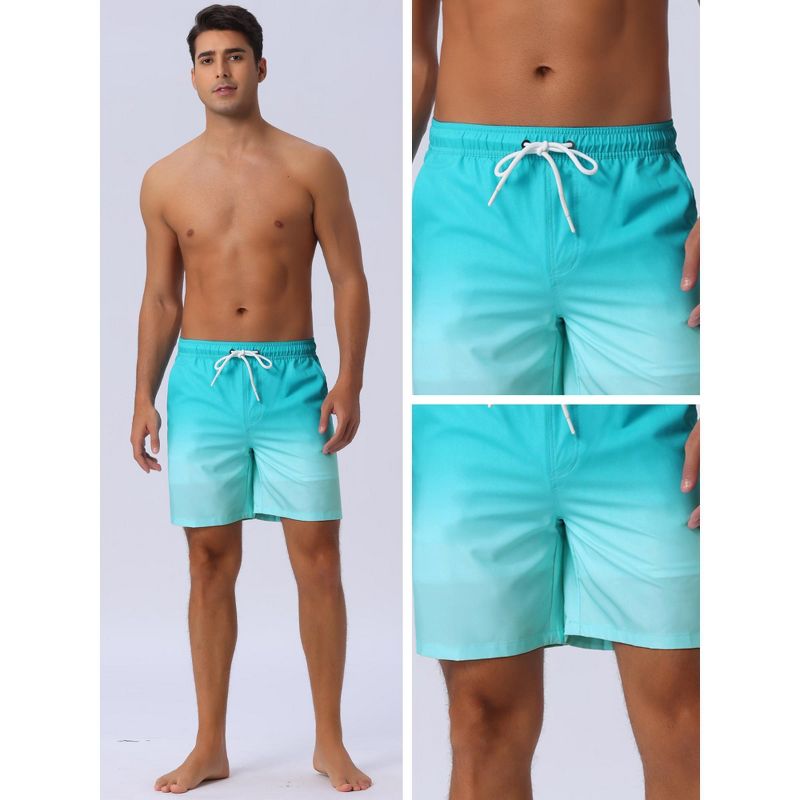 INSPIRE CHIC Men's Gradient Color Drawstring Elastic Waist Lining Summer Swimming Trunks Light Blue 36