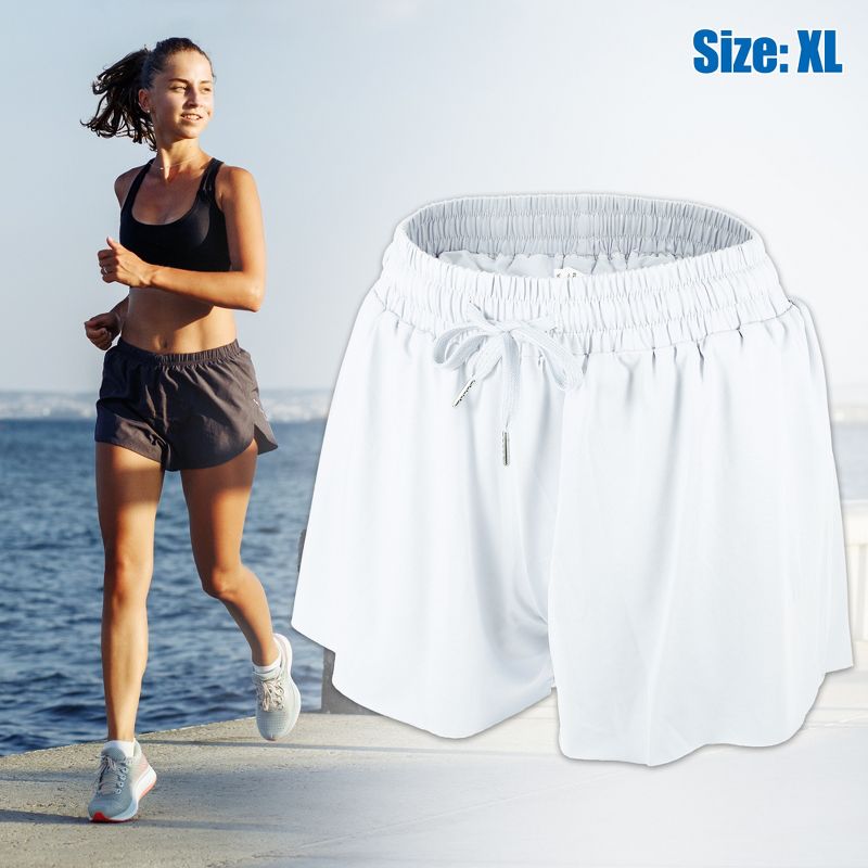 Unique Bargains Womens Flowy Running Shorts Casual High Waisted Workout Shorts 1Pc White XL