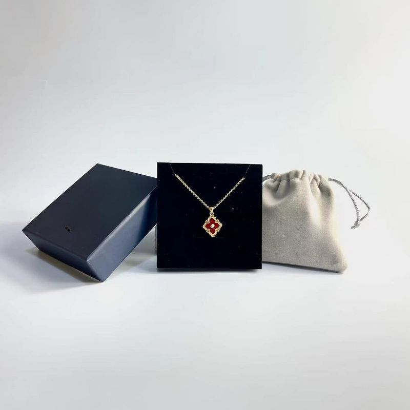 SmallRig Gold Clover Necklace for Women, 18K Gold Plated Double-Sided Pendant with Natural Stone Inlay Jewelry Gift Black Necklace and Bracelet Set
