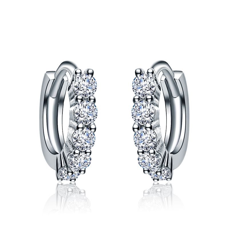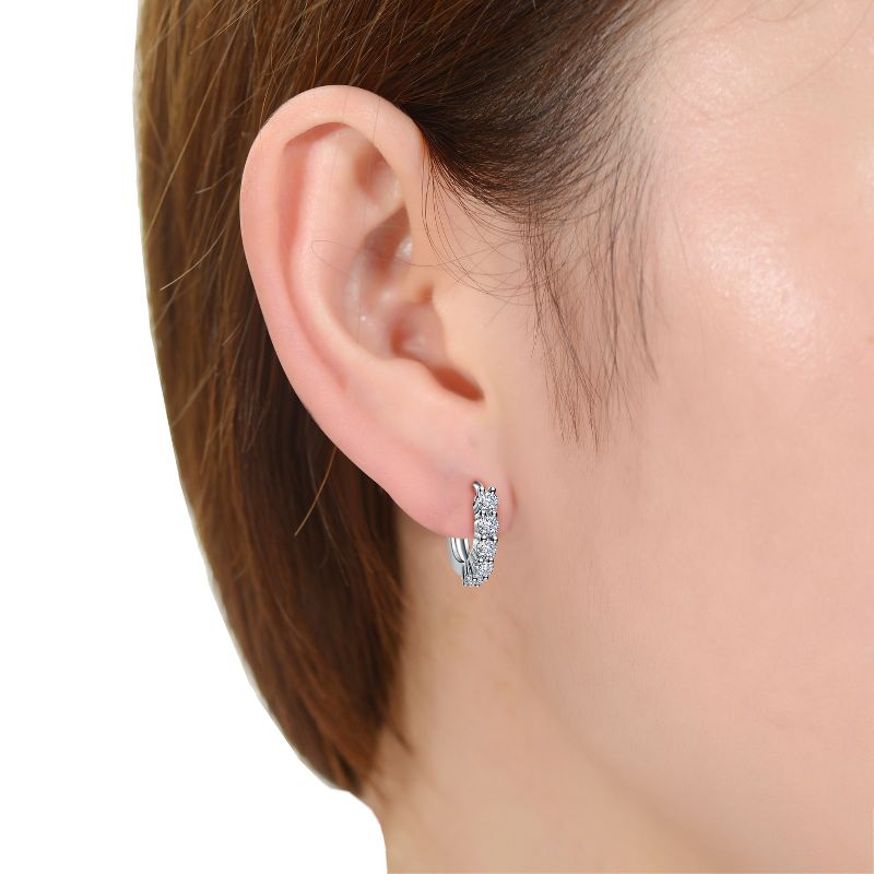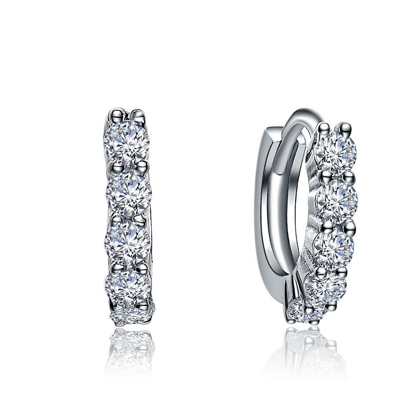 Guili Elegant White Gold Plated Cubic Zirconia Huggie Hoop Earrings Featuring Sleek Stylish Design Perfect for All Occasions and Modern Wear