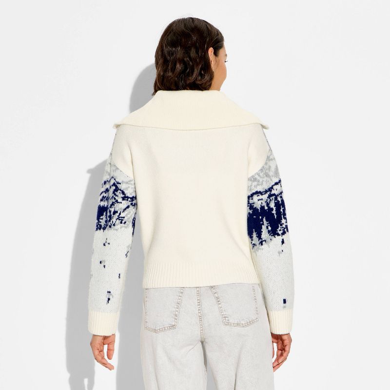 Women's Polo Collar Quarter Zip Novelty Pullover Sweater - Wild Fable™ Off-White Landscape M