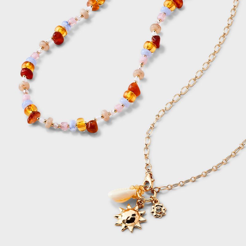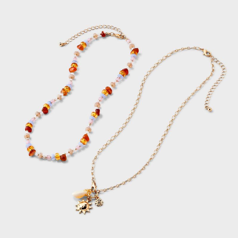 Beaded and Chain Charm Necklace 2pc Set - Universal Thread™ Gold/Neutral