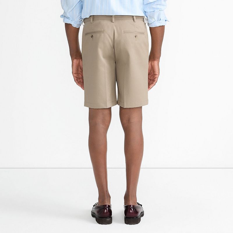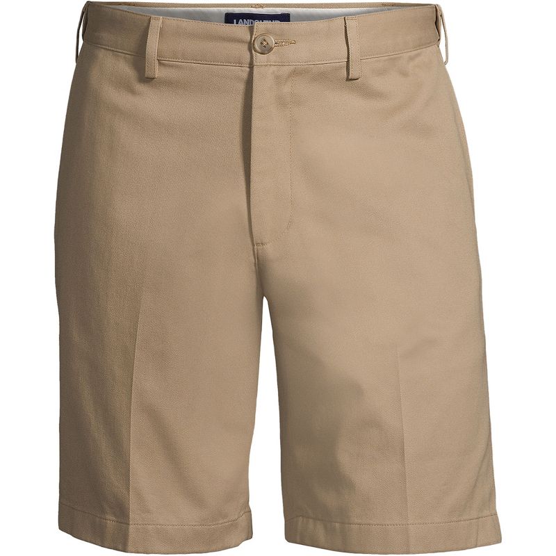 Lands' End Men's No Iron 9" Comfort Waist Plain Front Chino Short - 34 - Khaki