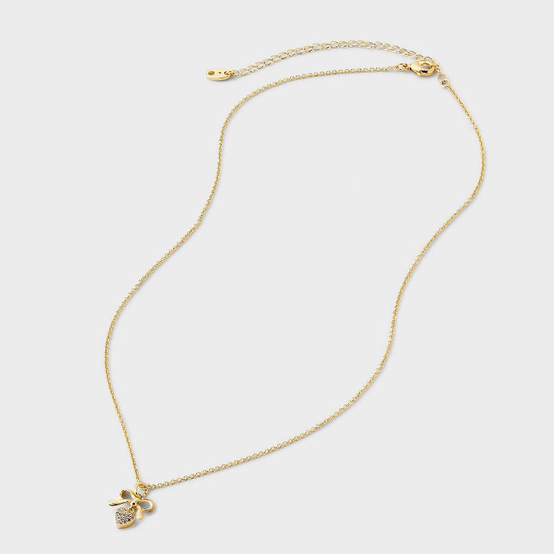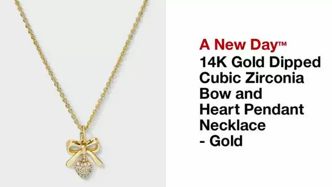 14K Gold Dipped Cubic Zirconia Valentines Bow and Heart Pendant Necklace - A New Day™ Gold