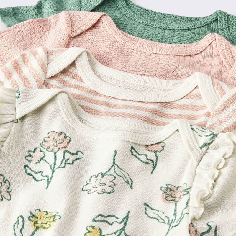 Baby Girls' 4pk Floral Short Sleeve Pointelle Bodysuit - Cloud Island™ Cream 0-3M