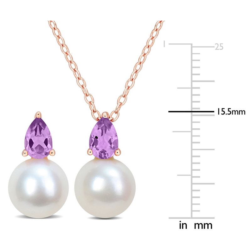 EVERLY JEWELRY | Rose Plated Sterling Silver 8.5-9mm Cultured Freshwater Pearl and 1ct TGW Amethyst Pendant with Chain and Earrings Set - 18 in