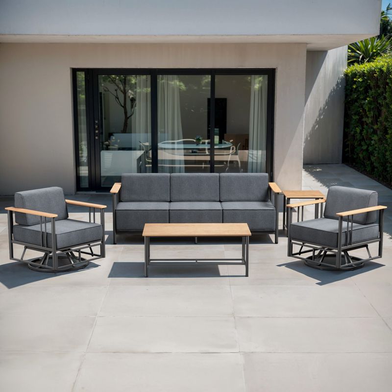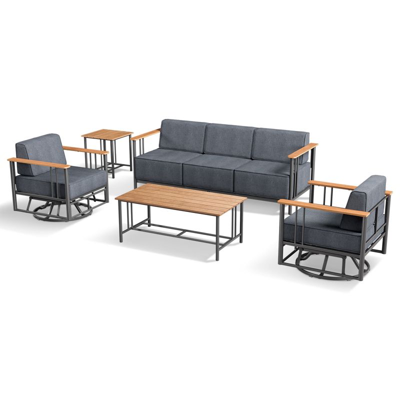 Belord Metal Outdoor Furniture Set with Swivel Chairs, 5PCS Patio Furniture Set with 6" Thick Cushions Swivel Chair and 10" Thick Cushions Couch