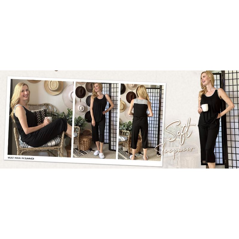 Ekouaer Capri Pajama Sets for Women 2 Piece Soft Cute Pjs Round Neck Sleeveless Lounge Set for Summer Sleepwear Purple S
