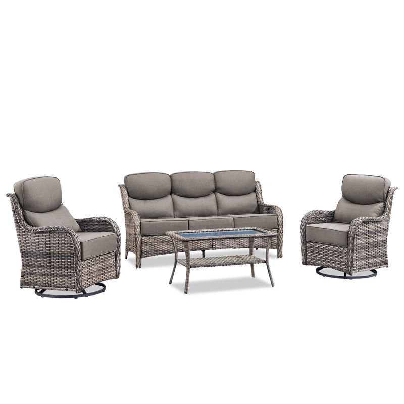 Gymojoy Outdoor 4 Piece Patio Sofa Coffee Table with Swivel Chairs Furniture Set for Deck Porch Backyard