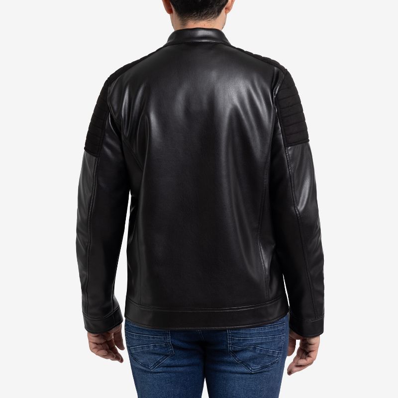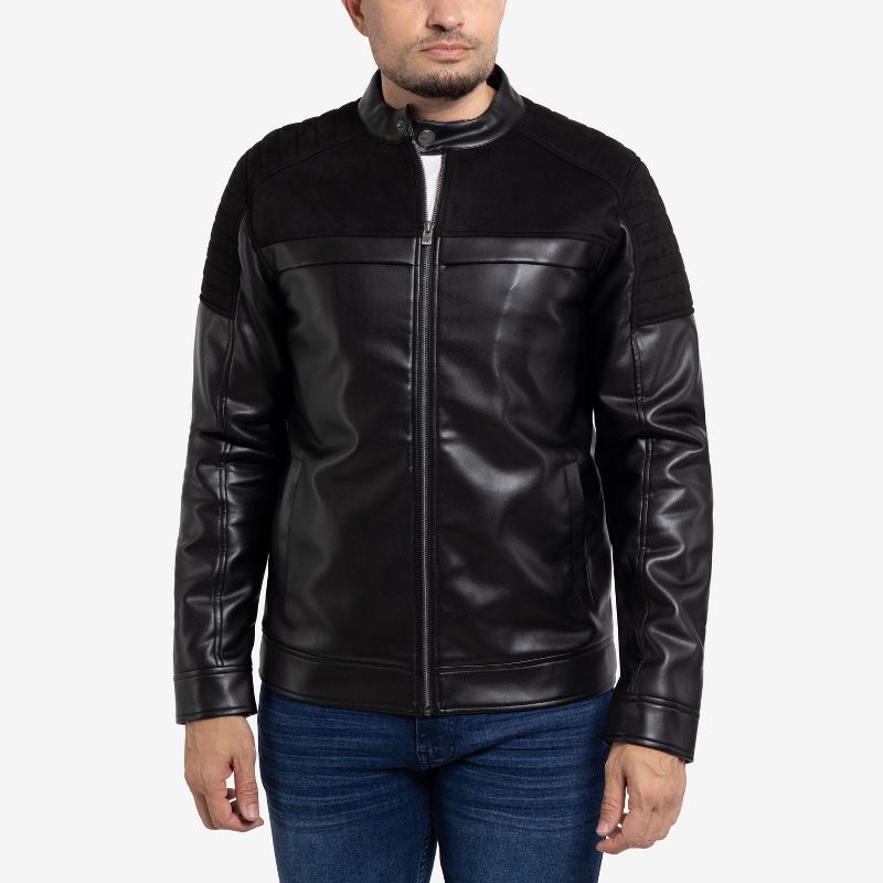 X RAY Mens Motorcycle PU Leather Jacket With Faux Shearing Liningin BLACK/BLACK Size Medium