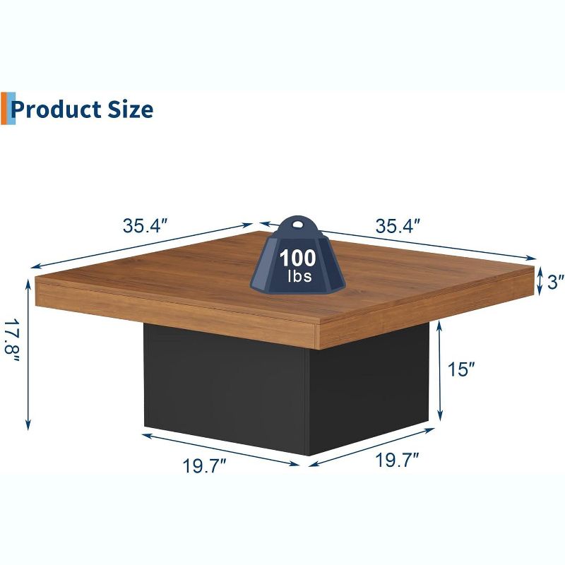 Farmhouse Wood Square Coffee Table, 35 Inch Small Table with Leg Lights for Parlor, Home Office, Apartment, Reading Room, Living Room, Grey