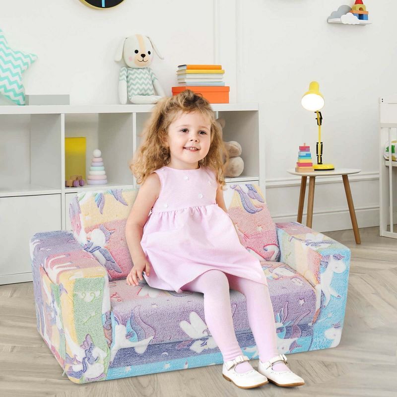 Costway 2-in-1 Flip Out Kid’s Sofa Chair Convertible Toddler Couch to Lounger