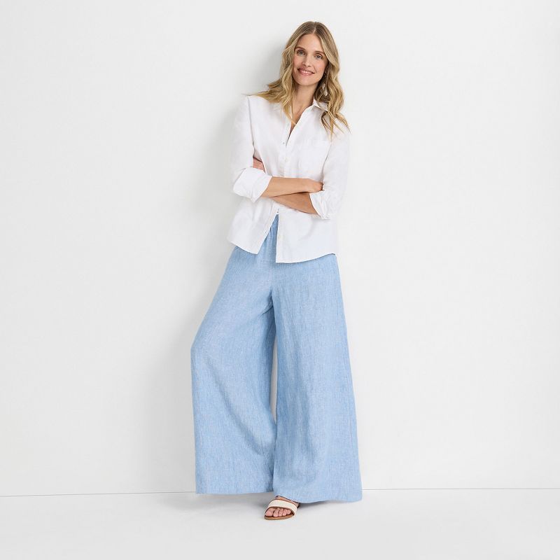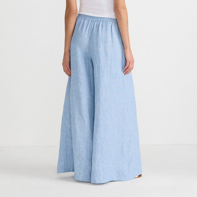 Lands' End Women's Linen High Rise Palazzo Pants - Set Bottom - X Large - Soft Blue Linen