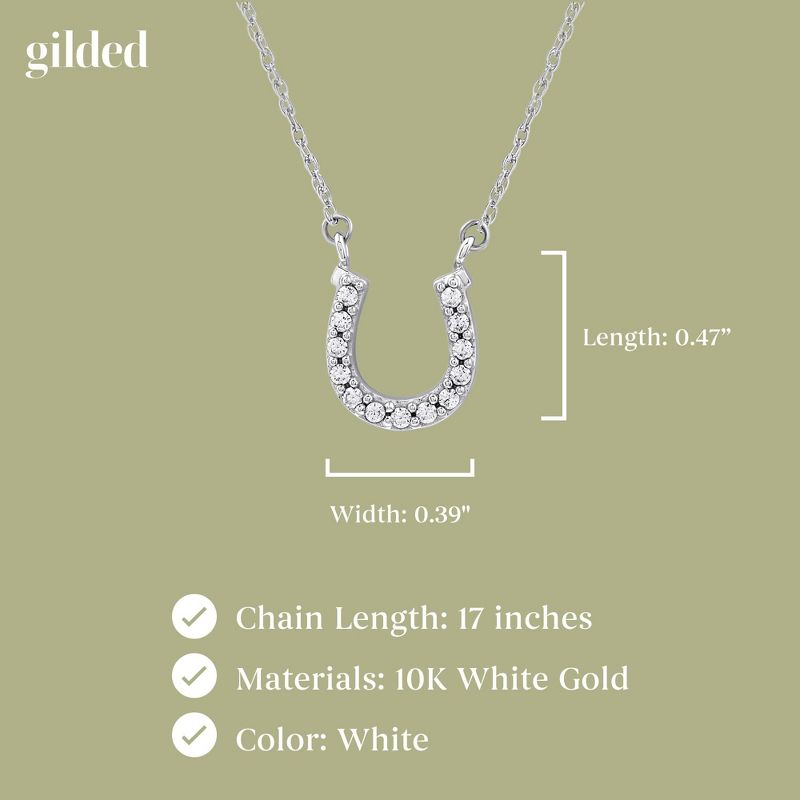 GILDED 1/10 CTTW Natural Round-Cut Diamonds Horseshoe Necklaces in 10KT White Gold, 17" Chain