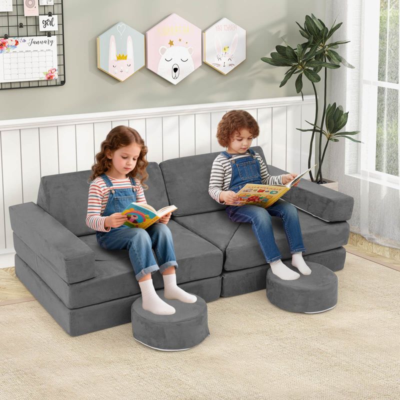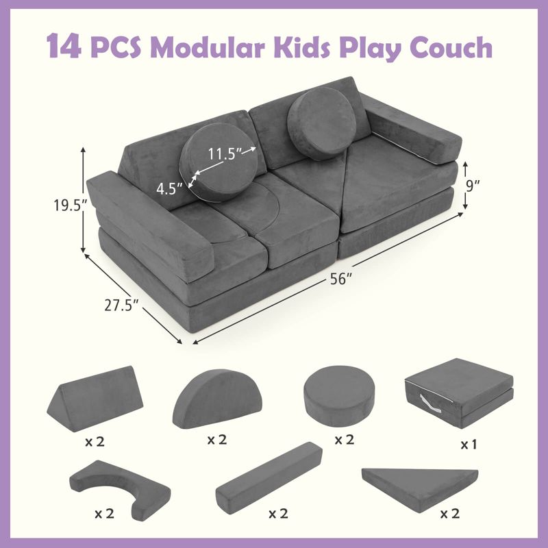 Costway 14 PCS Modular Kids Play Couch Child Sectional Sofa Toddler Soft Playset Gray