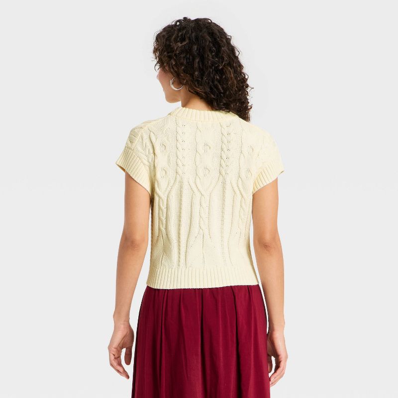 Women's Short Sleeve Crewneck Cable Pullover Sweater - A New Day™ Cream S