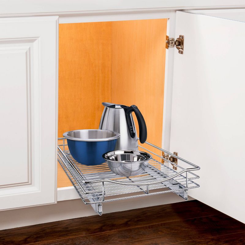 Lynk Professional Slide Out Cabinet Organizer - Pull Out Under Cabinet Sliding Shelf - 14" wide x 21" deep - Chrome: Kitchen Storage