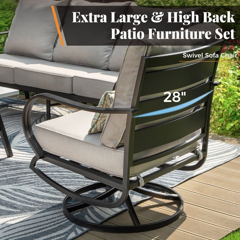 Captiva Designs 5pc Metal Patio Furniture Conversation Set with Swivel Chairs and Ottomans for Garden Porch Backyard Beige