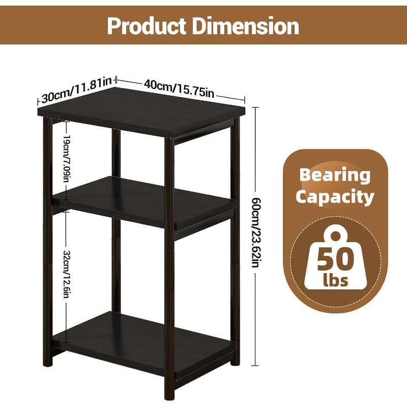 3-Tier Side Table, Industrial Storage End Table with Open Shelves, Compact Bedside Table for Living Room Furniture, Black