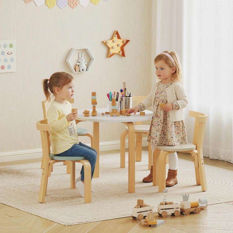 Qaba Kids Table and Chairs Set, 5 Piece Wooden Toddler Table and 4 Chairs Set for Kids Arts, Crafts, Drawing, Read, for Playroom, Nursery, Green