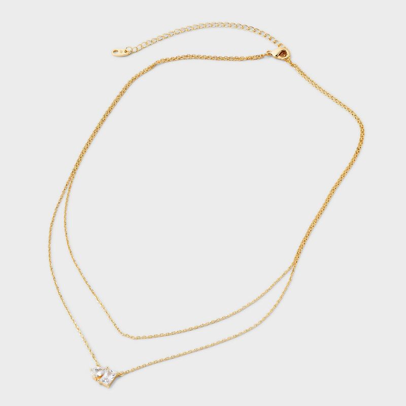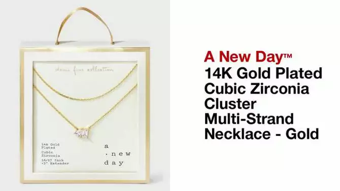 14K Gold Plated Cubic Zirconia Cluster Multi-Strand Necklace - A New Day™ - Gold: Brass, Lobster Claw Clasp, 17" Length