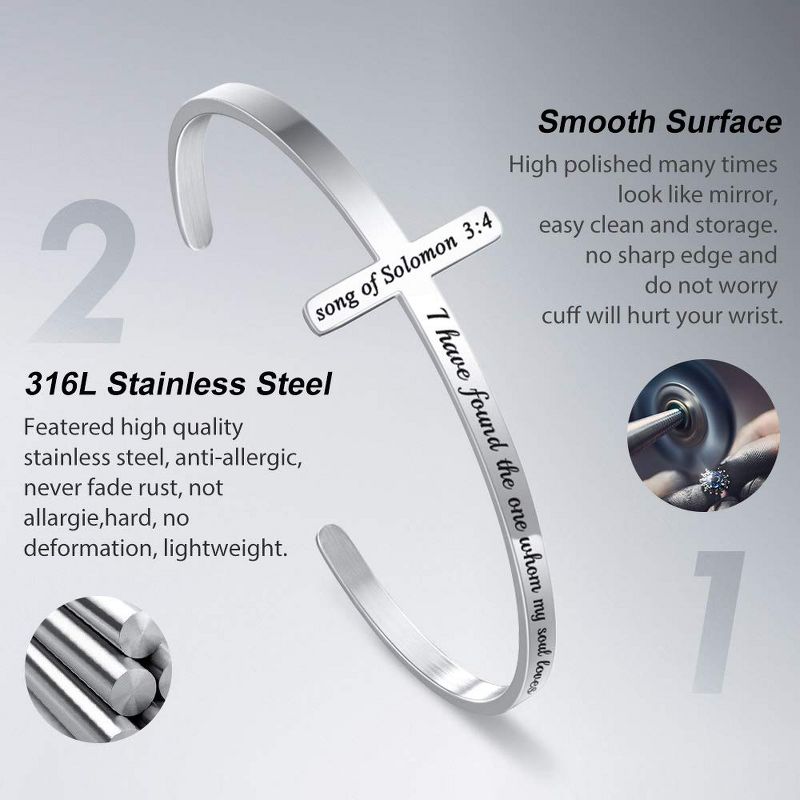 Turandoss Silver Cross Bracelets for Women Teen Girls - Silver Inspirational Text Bracelet, Birthday Christian Gifts, Be Still And Know That I Am God
