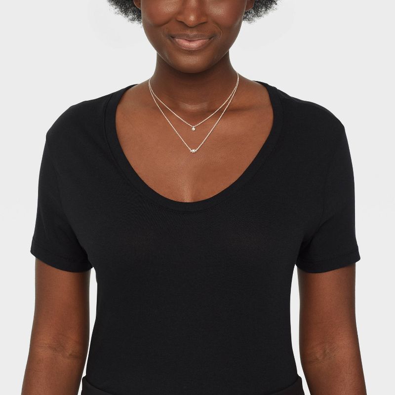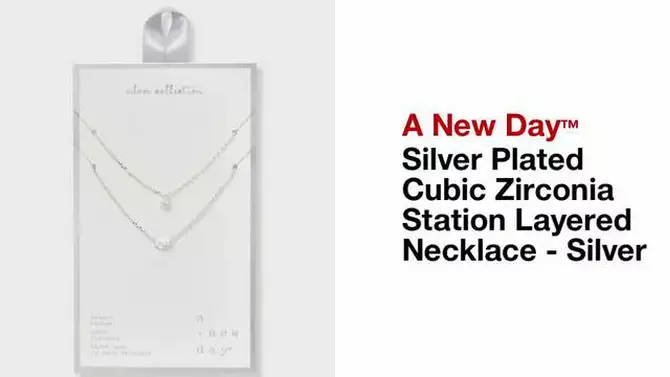 Silver Plated Cubic Zirconia Station Layered Necklace - A New Day™ Silver: Lobster Claw Clasp, 16-19" Length