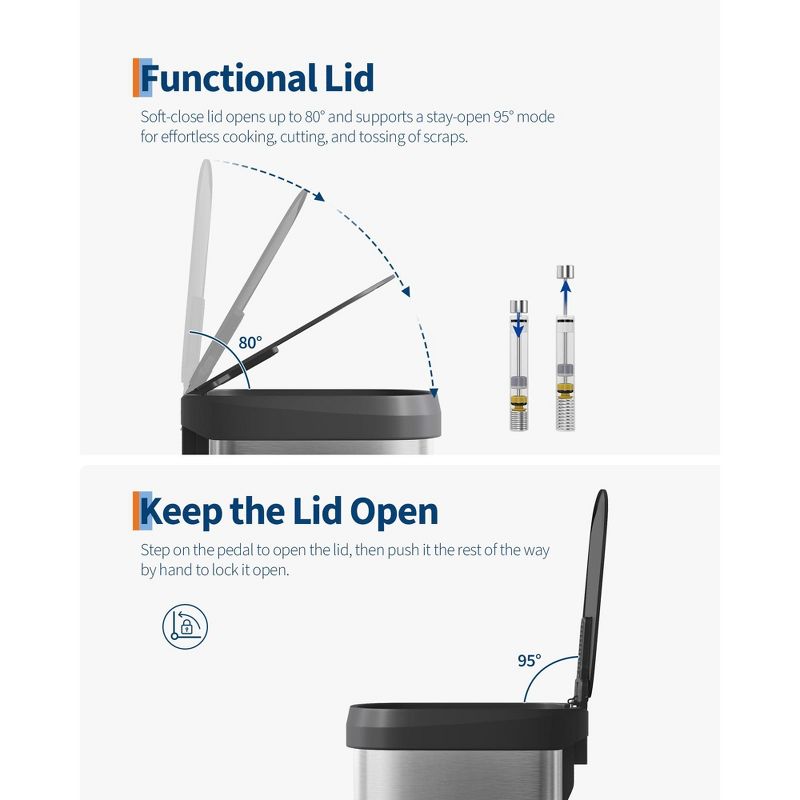 16 Gal Stainless Steel Kitchen Trash Can, 60L Recycling or Garbage Bin, Large Capacity Garbage Bin with Soft Close Lid and Foot Pedal for Home Office