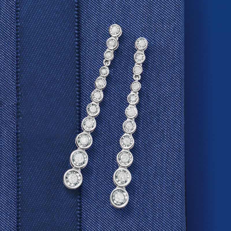 Ross-Simons Jewelry 0.50 ct. t.w. Bezel-Set Diamond Drop Earrings in Sterling Silver
