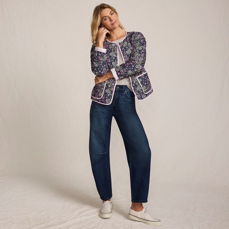 Lands' End Women's Quilted Reversible Jacket - X Large - Floral/Purple/Ivory