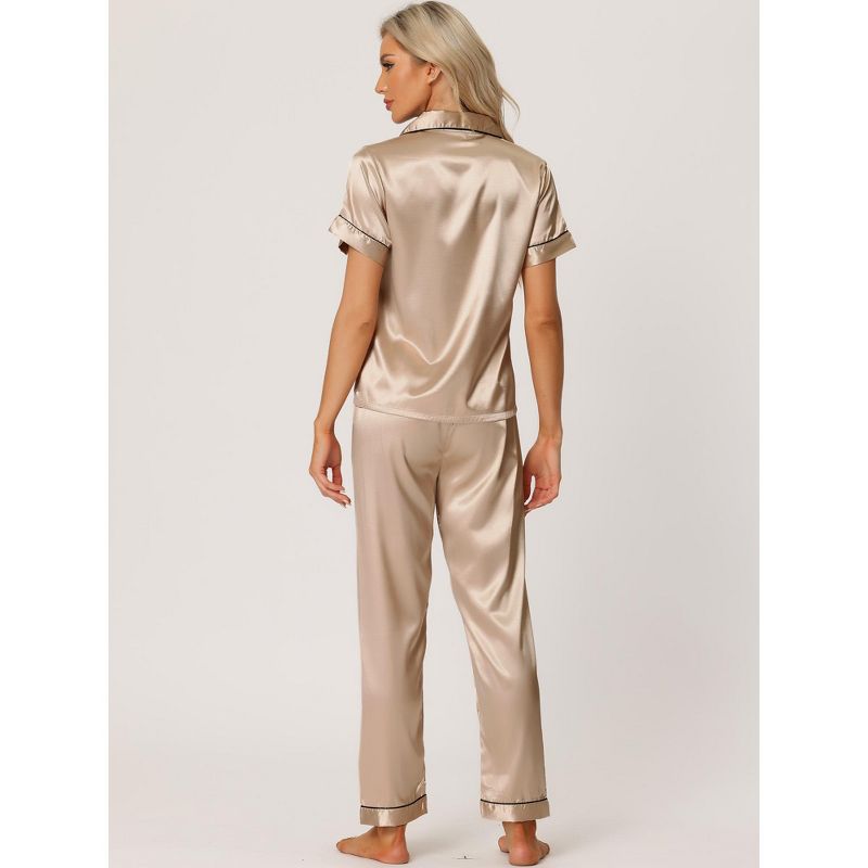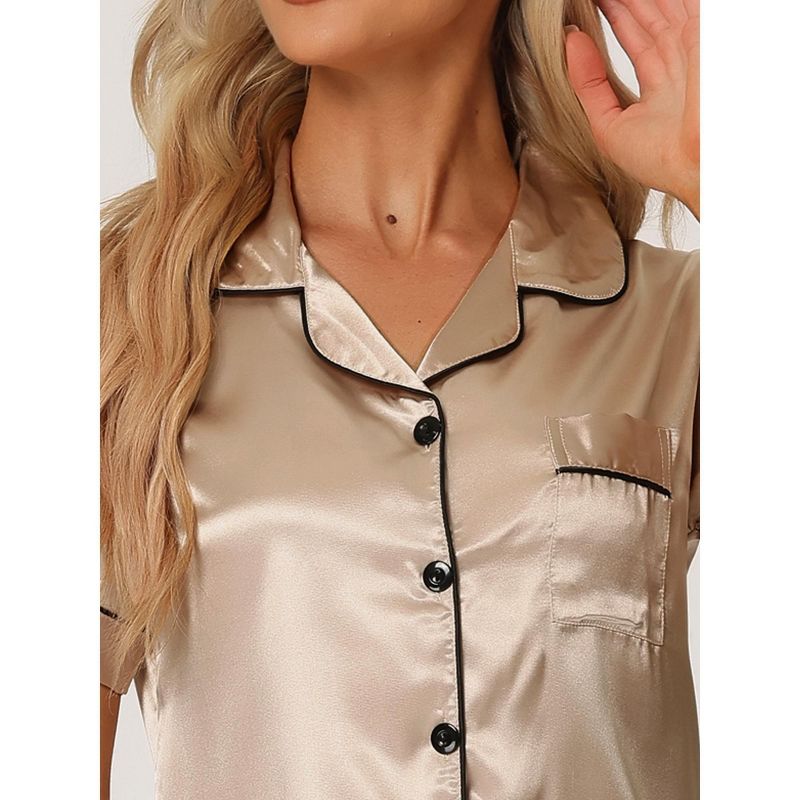 cheibear Women's Buton Down Sleepwear Tops with Pants Nightwear Lounge Pajama Set X-Small Champagne