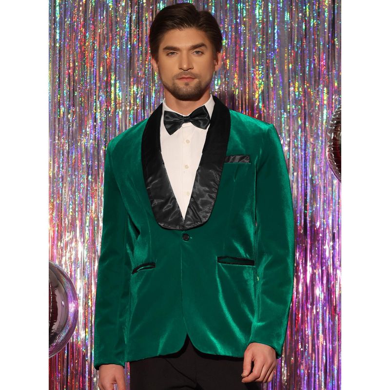 Lars Amadeus Men's Shawl Lapel Business Wedding Velvet Tuxedo Blazers Green X Large